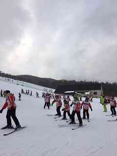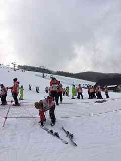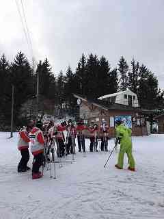 午後のスキーの様子です。 インストラクターの先生の話を皆熱心に聞きながら、滑っていました。