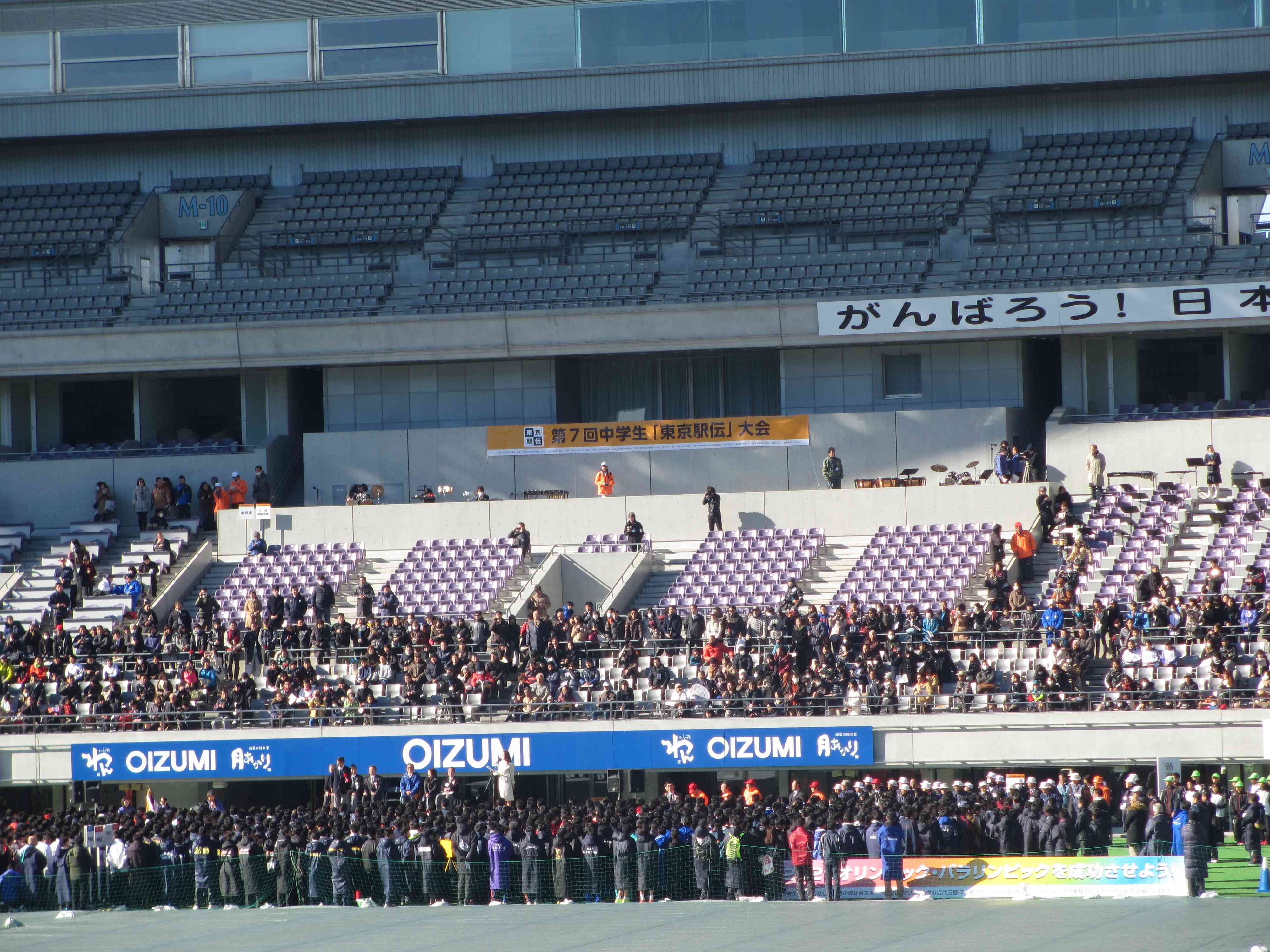 味の素スタジアムにて、晴天の中、東大和市の中学2年生が1本の襷を最後までつなぎきりました。女子45位/50、男子44位/50でした。走りきった生徒たちは素晴らしい笑顔でした。