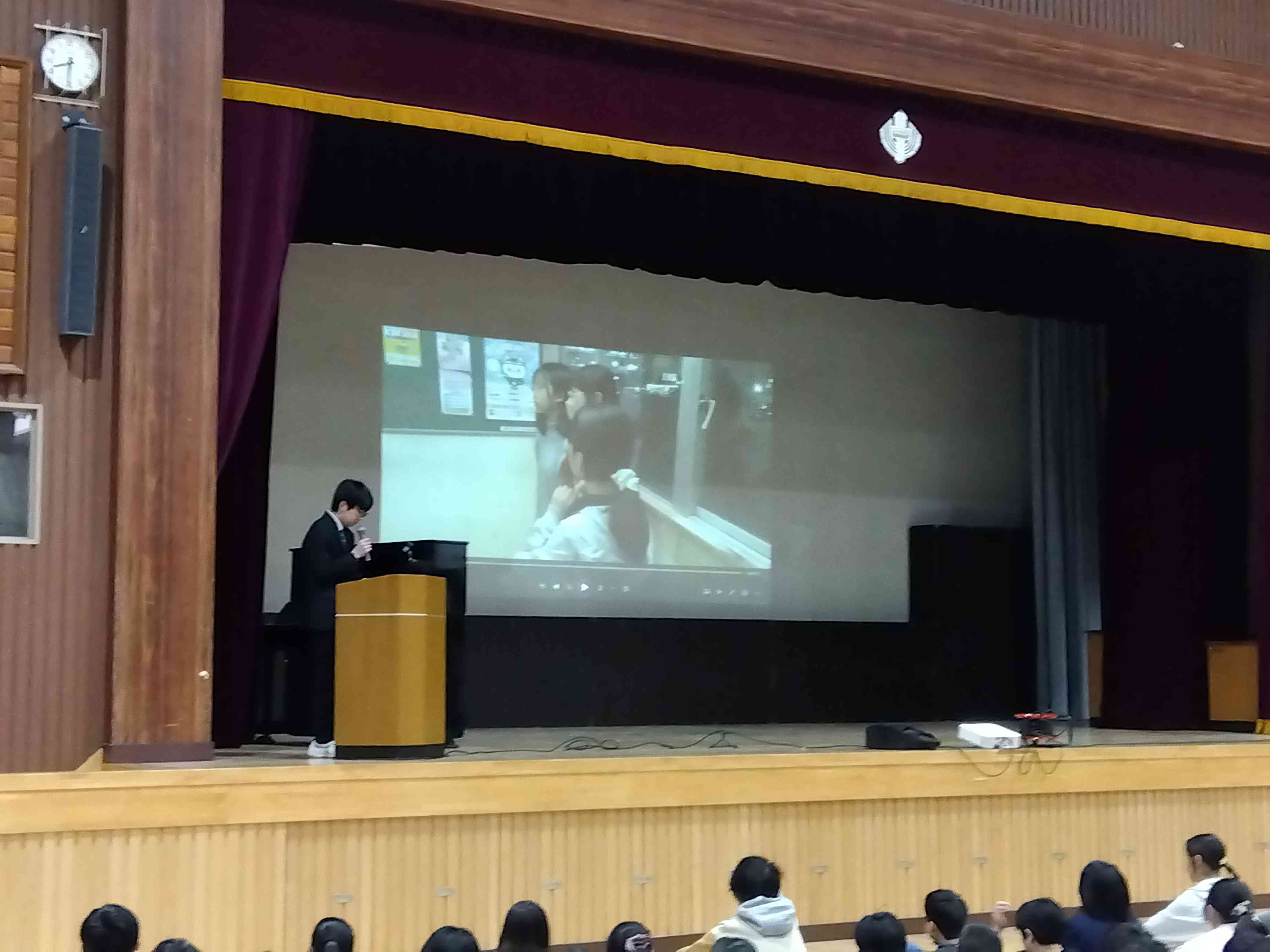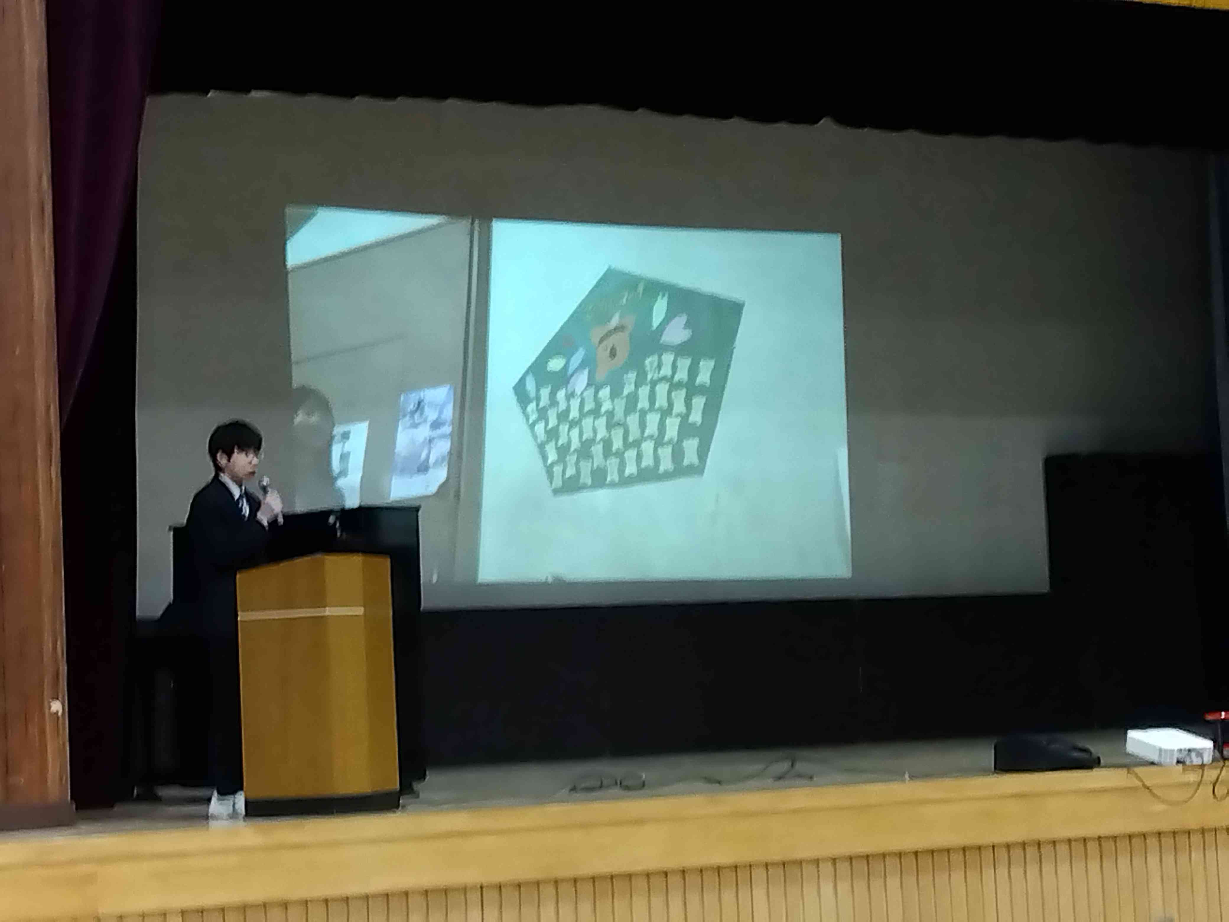 1月19日(月)の生徒会朝礼で、3年生応援企画として、在校生から3年生に向けて、メッセージと折り鶴がプレゼントされました。