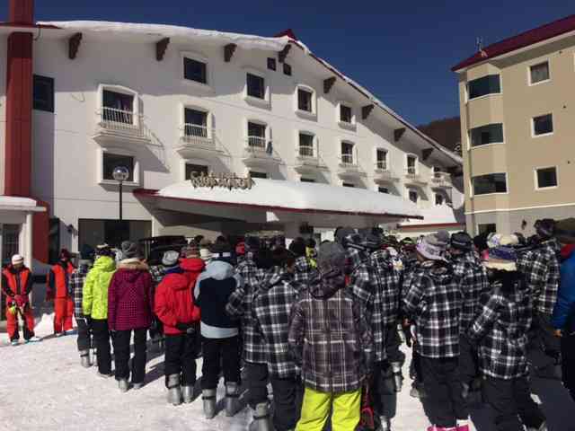 今日から楽しみにしていた長野県菅平高原スキー場での移動教室が始まりました。 開校式の様子です。