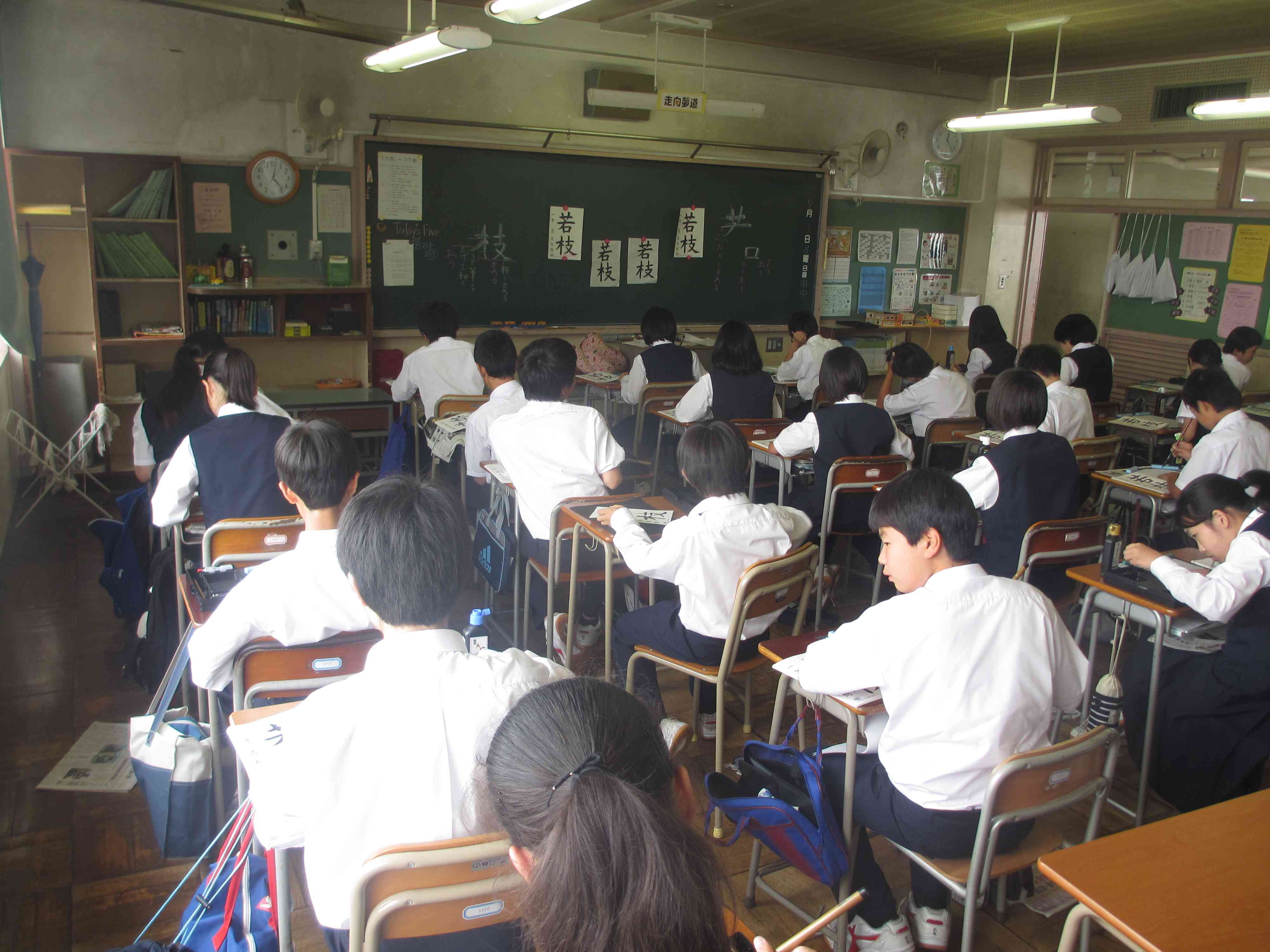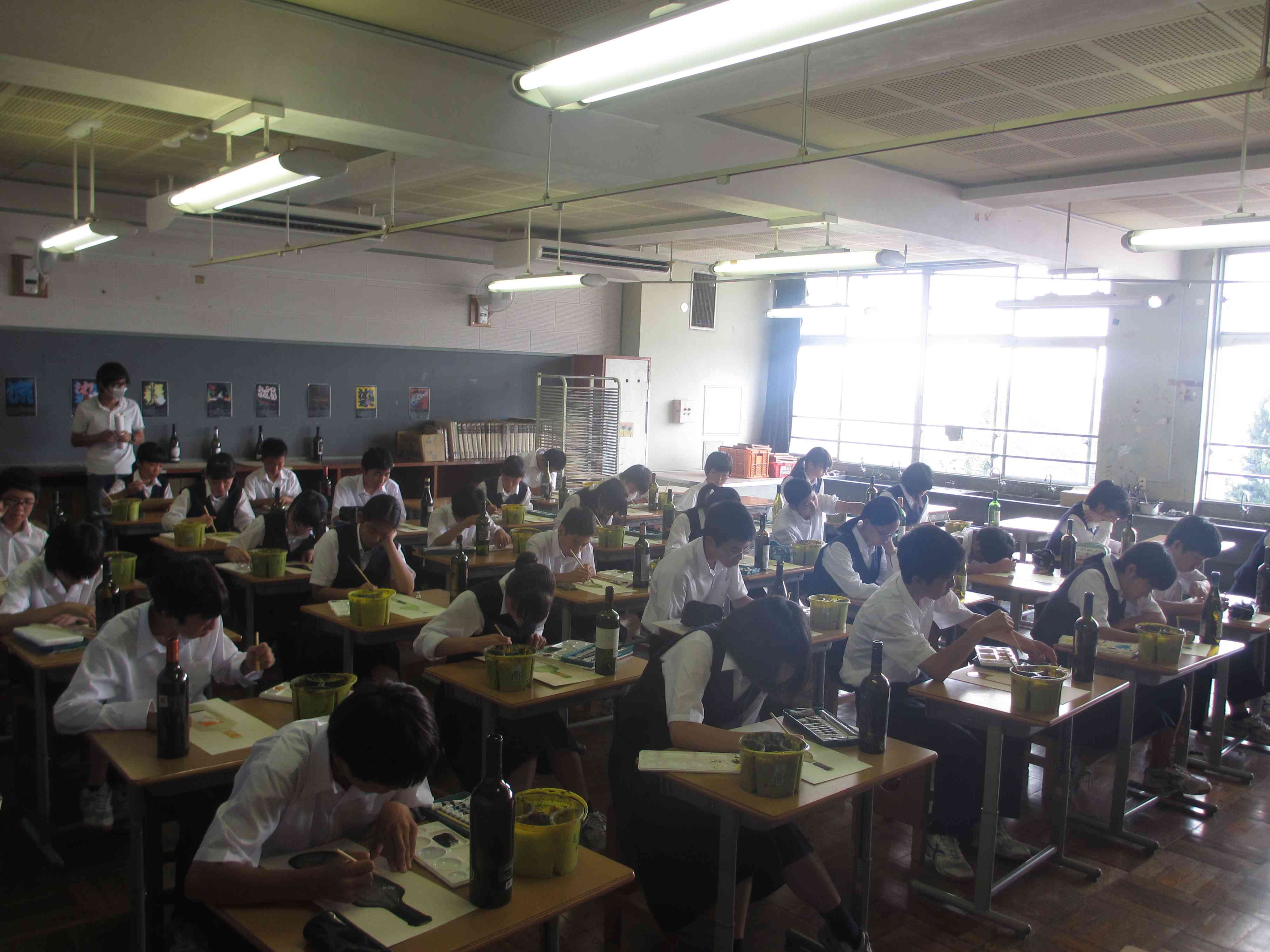 保健体育でプールが始まりました。 書写では毛筆を行っています。 美術は、瓶を描きます。 熱中症対策です。