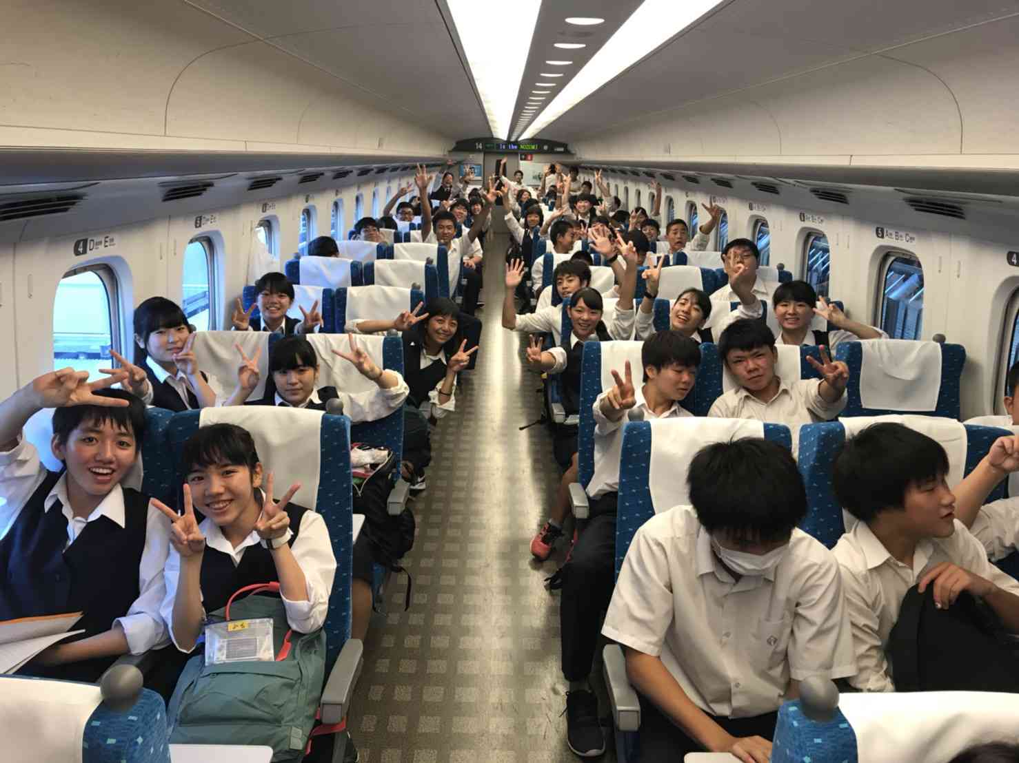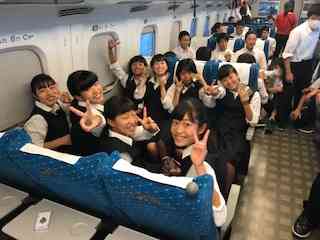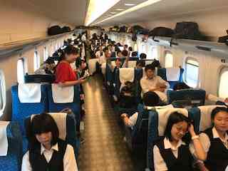 3年生は今日から修学旅行です。 開校式と新幹線の様子