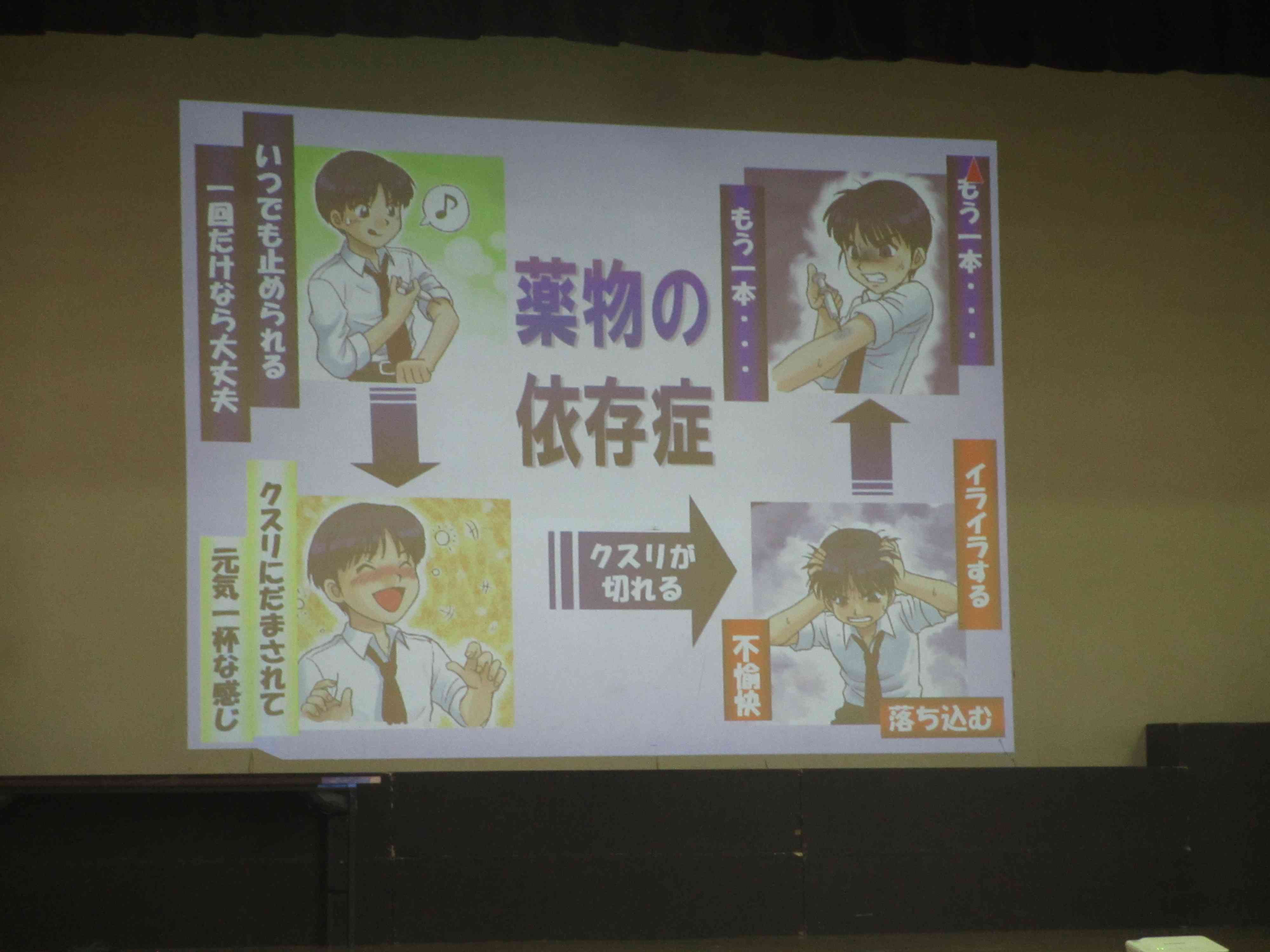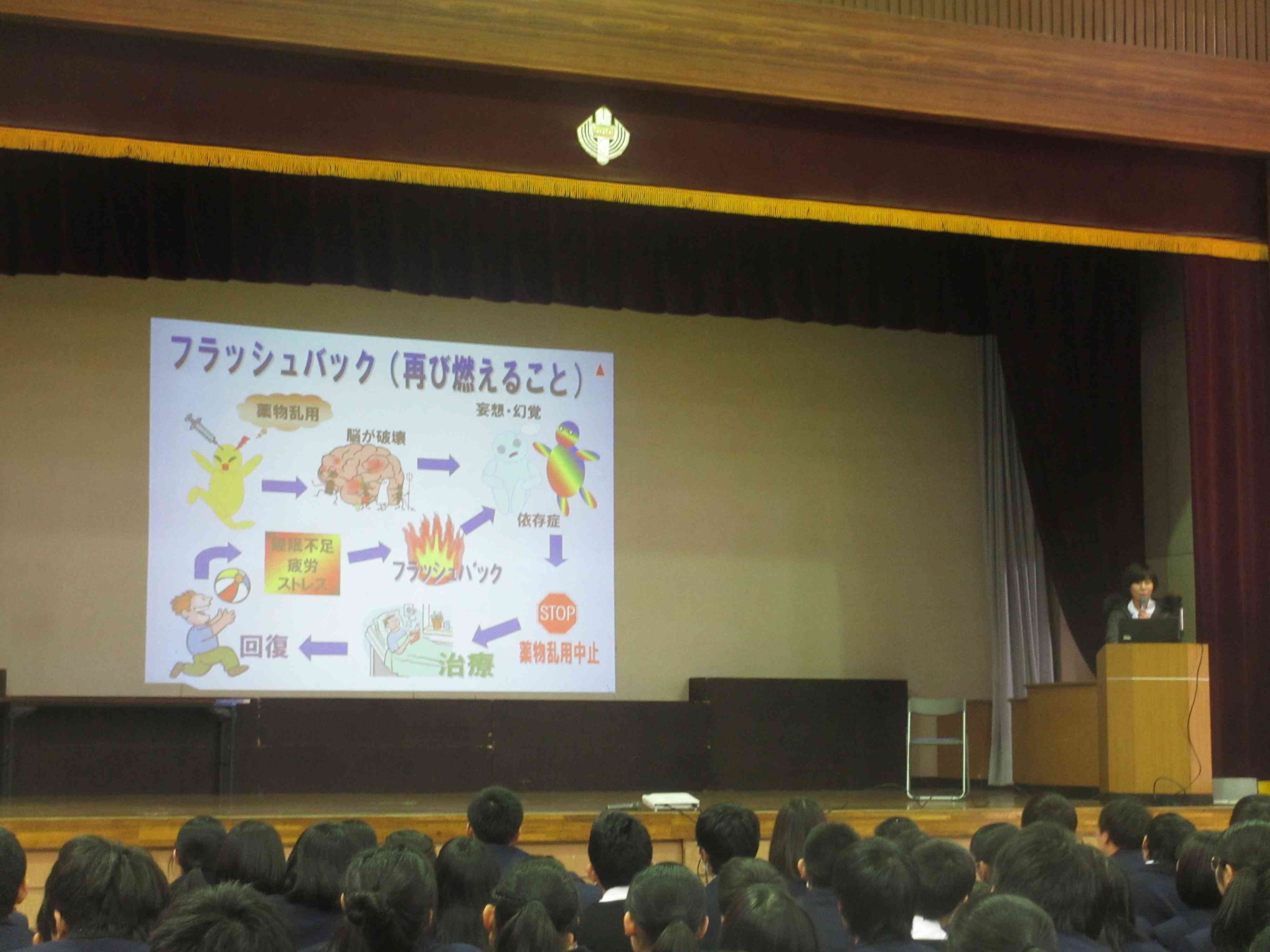 学校薬剤師の小田切みずほ先生を講師に、薬物の怖さ、断る勇気を勉強しました。